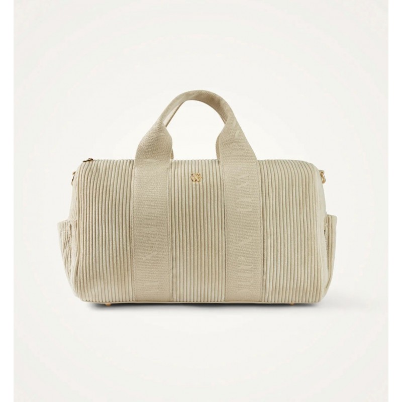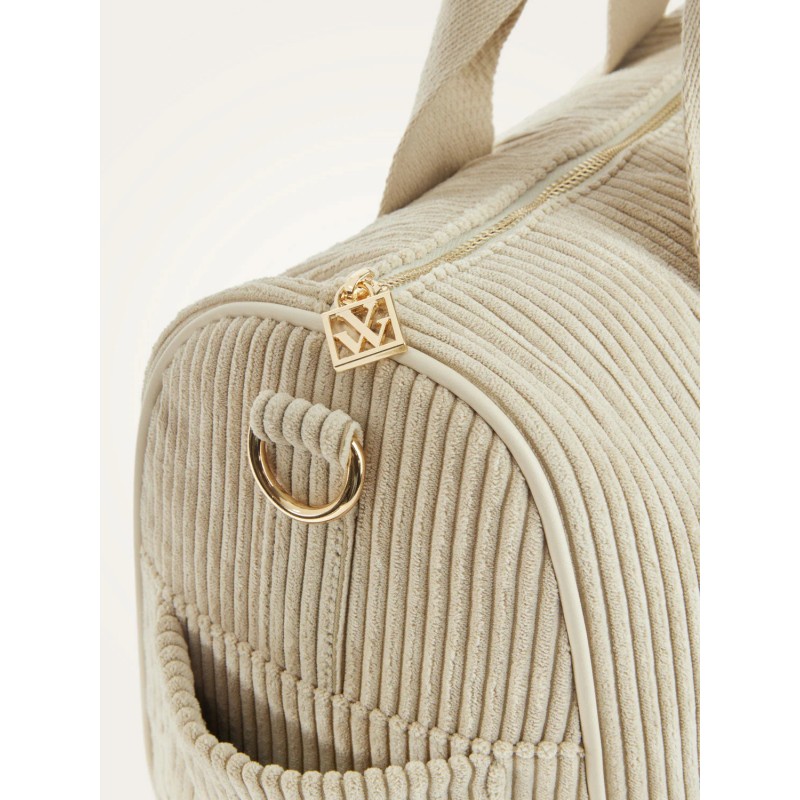 - Grand sac bowling en velours côtelé beige clair