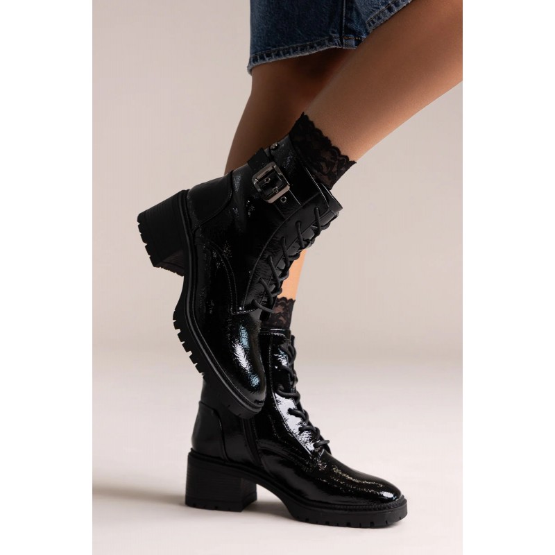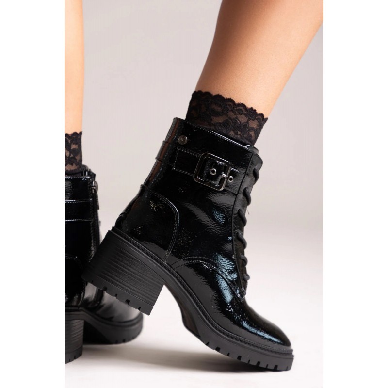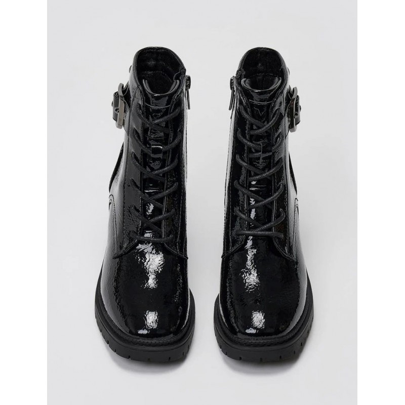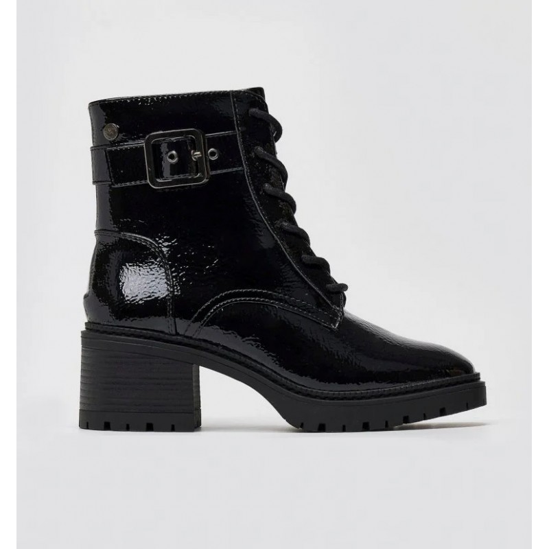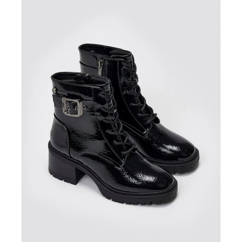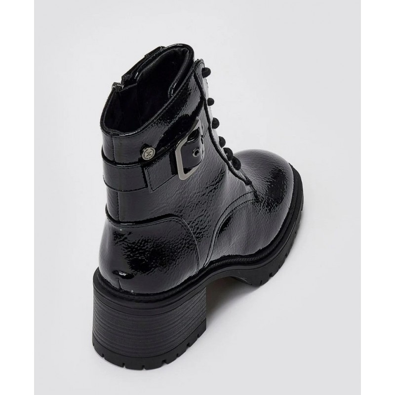Bottines femme style militaire de la marque Xti, en verni pour une touche moderne et brillante. Dotées d'une boucle décorative sur le côté, elles sont dotées d'une fermeture éclair intérieure pour un enfilage facile, alliant confort et rapidité. Idéales pour un look urbain audacieux avec une touche de distinction. Semelle intérieure amovible à mémoire de forme.