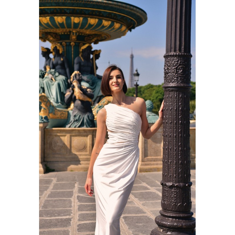 On l’apprécie également pour sa structure asymétrique laissant percevoir une épaule dénudée pour une touche d'élégance sexy assumée.