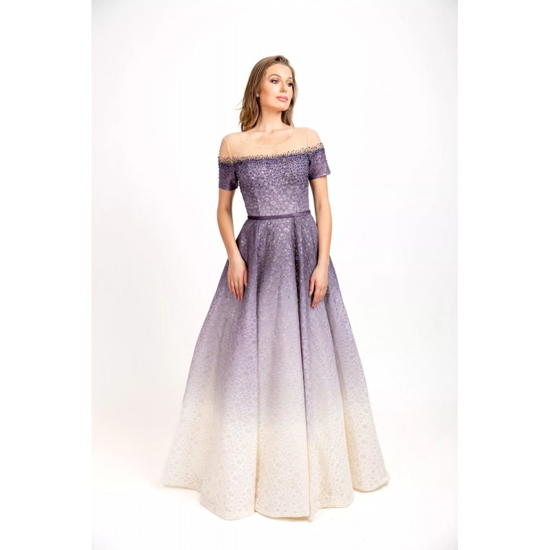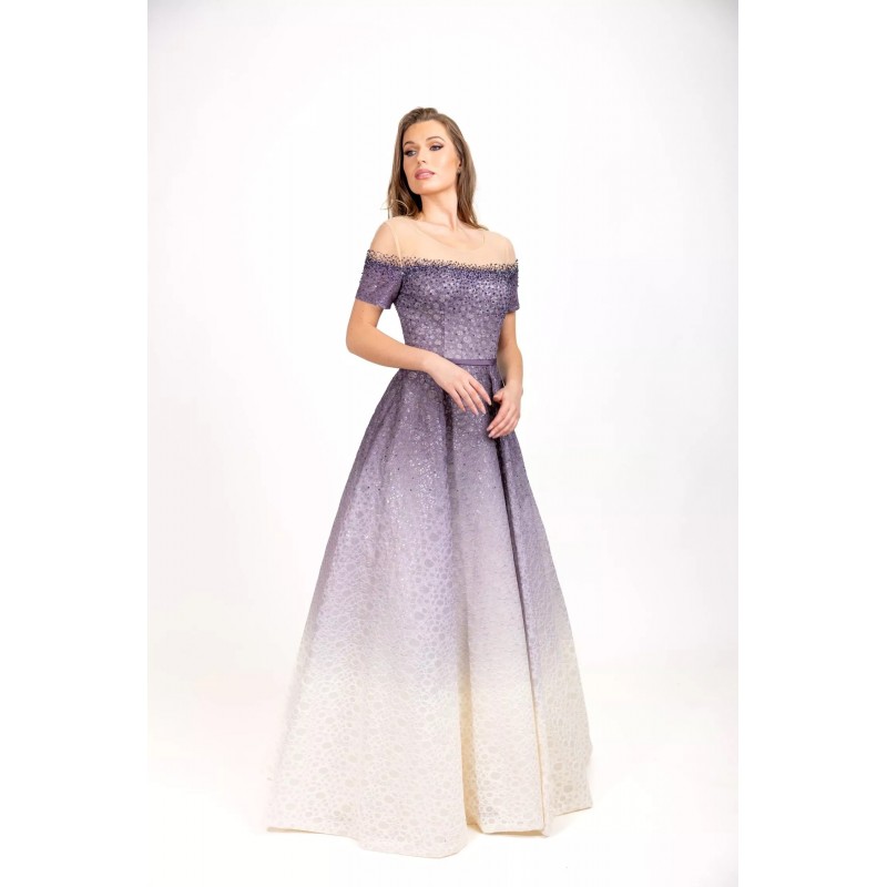 Ballote est une robe chic et élégante. Elle est faite d'un tissu fin et transparent, ornée de motifs en écailles transparents. Elle dispose également d'une fine ceinture pour mettre en valeur les courbes du corps. Sa couleur dégradée lui donne un style exclusif, formel et très glamour. Elle est disponible en un beau coloris unique gris.