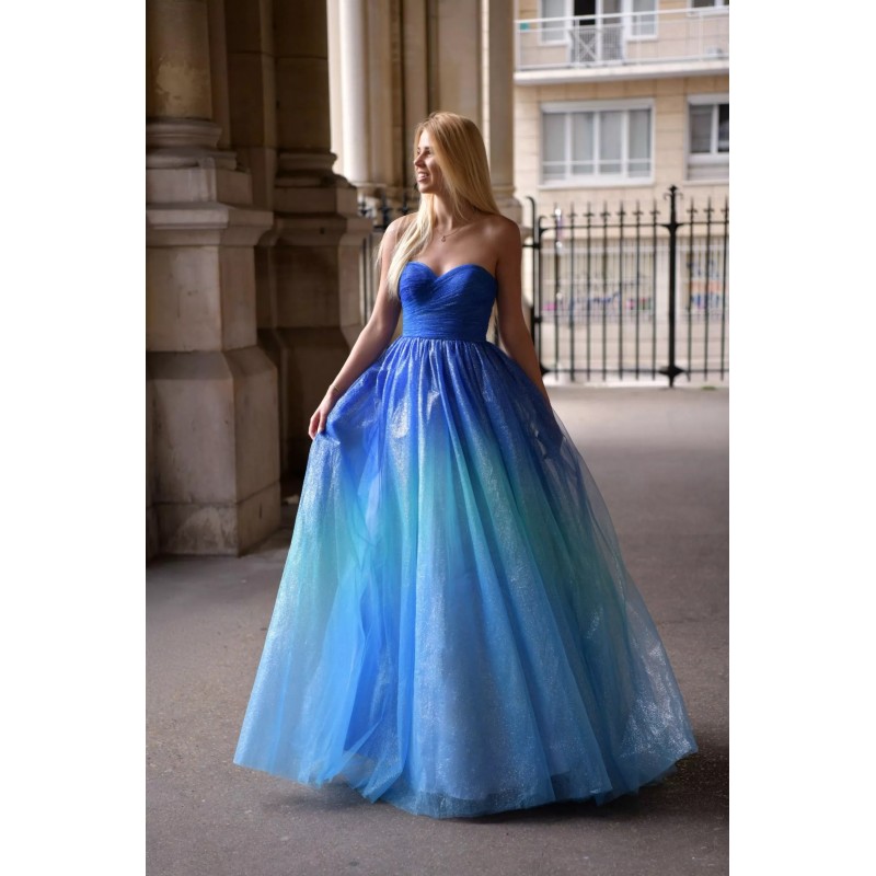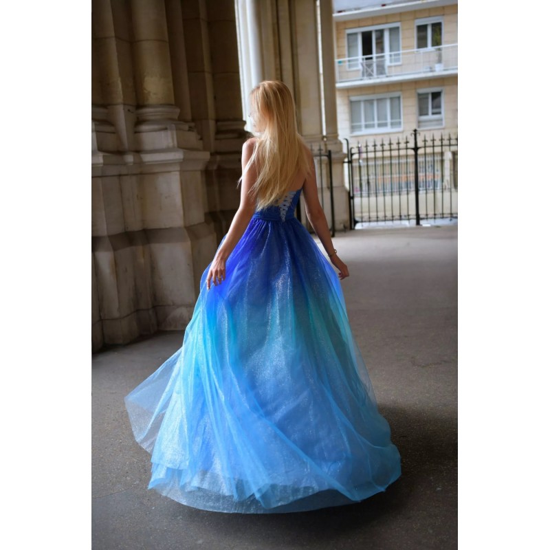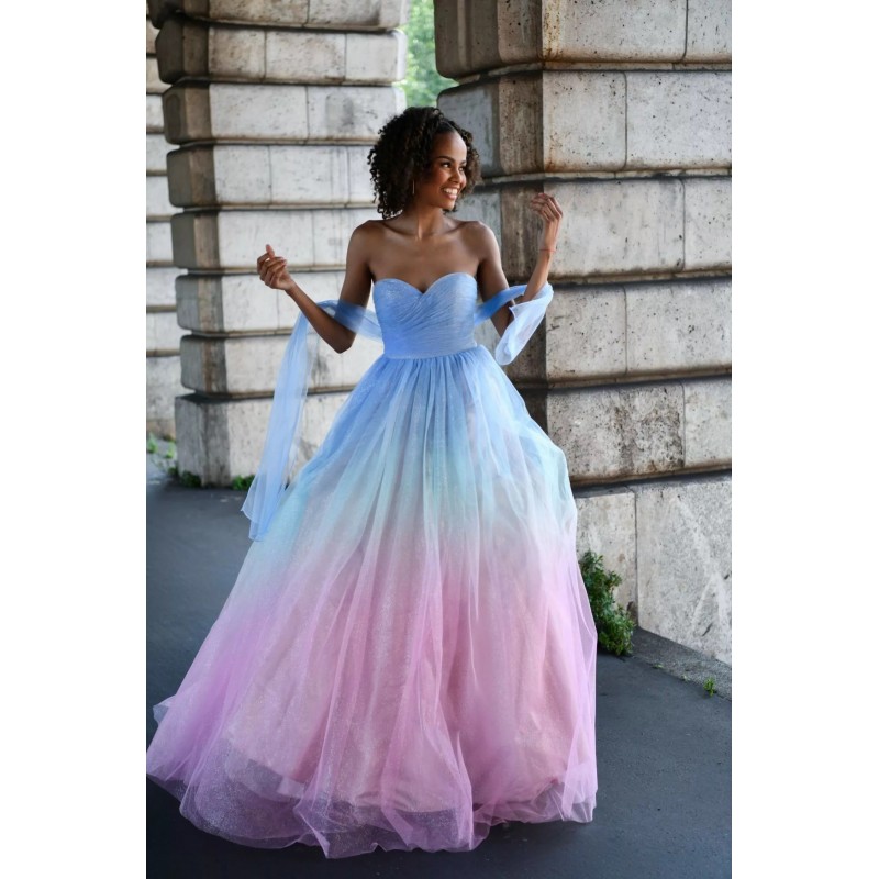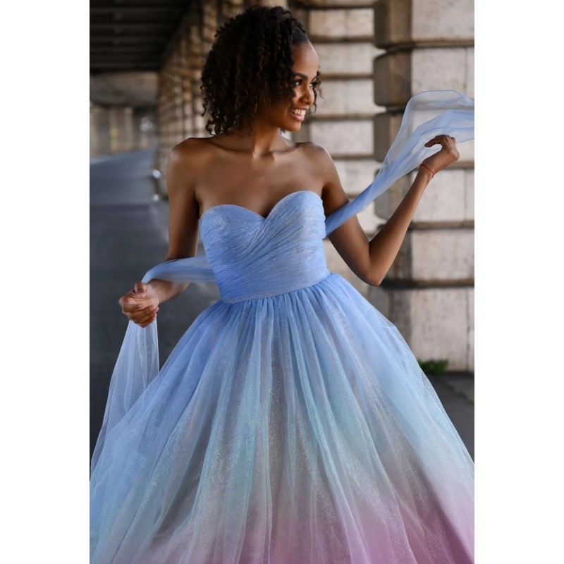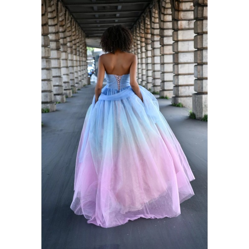 Robe longue en tulle aux magnifiques nuances. Coupe princesse qui évoque une allure romantique et élégante. Le bustier structuré qui sublime le buste grâce à un laçage élégant au dos. La taille marquée affine la silhouette, tandis que la jupe évasée offre un effet voluptueux avec ses superpositions délicates. Le dégradé de couleur en transparence apportent une touche artistique et moderne. Une robe parfaite pour un événement sophistiqué, alliant douceur et originalité