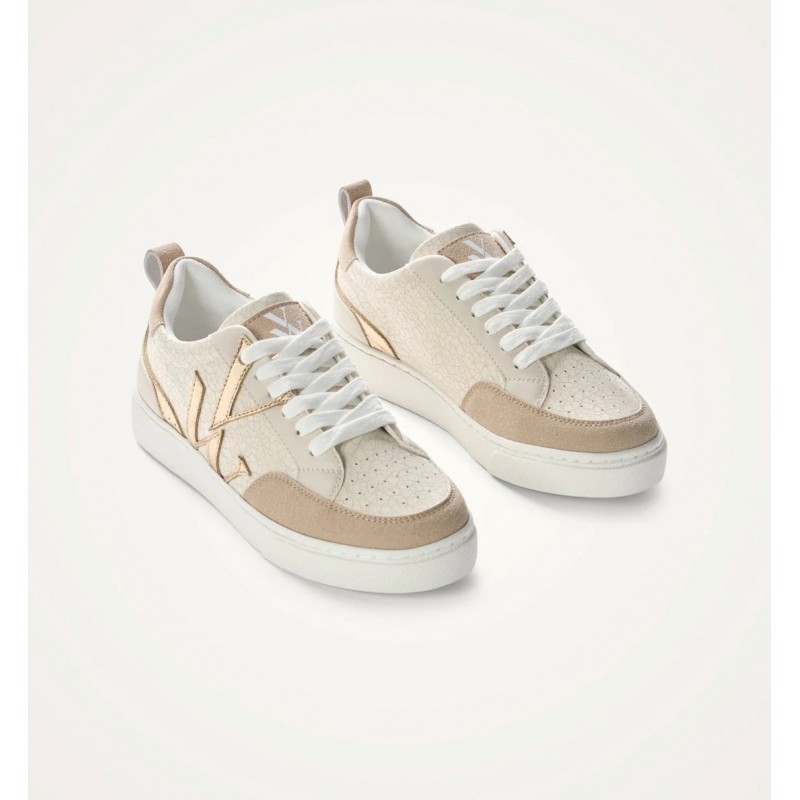 - Bout avant et patch arrière en suédine effet daim fendu beige clair