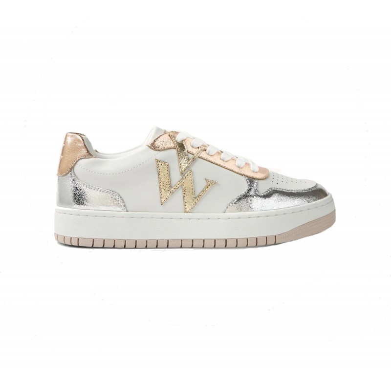 - Garants et patch arrière en similicuir texturé rose gold