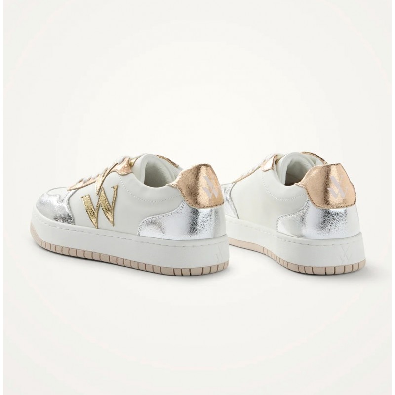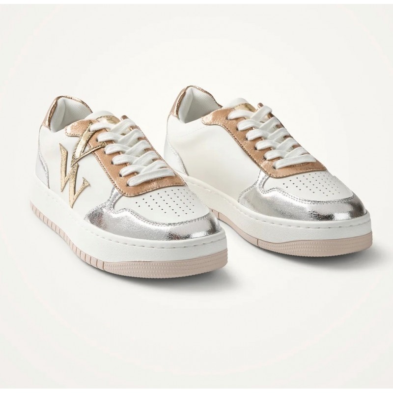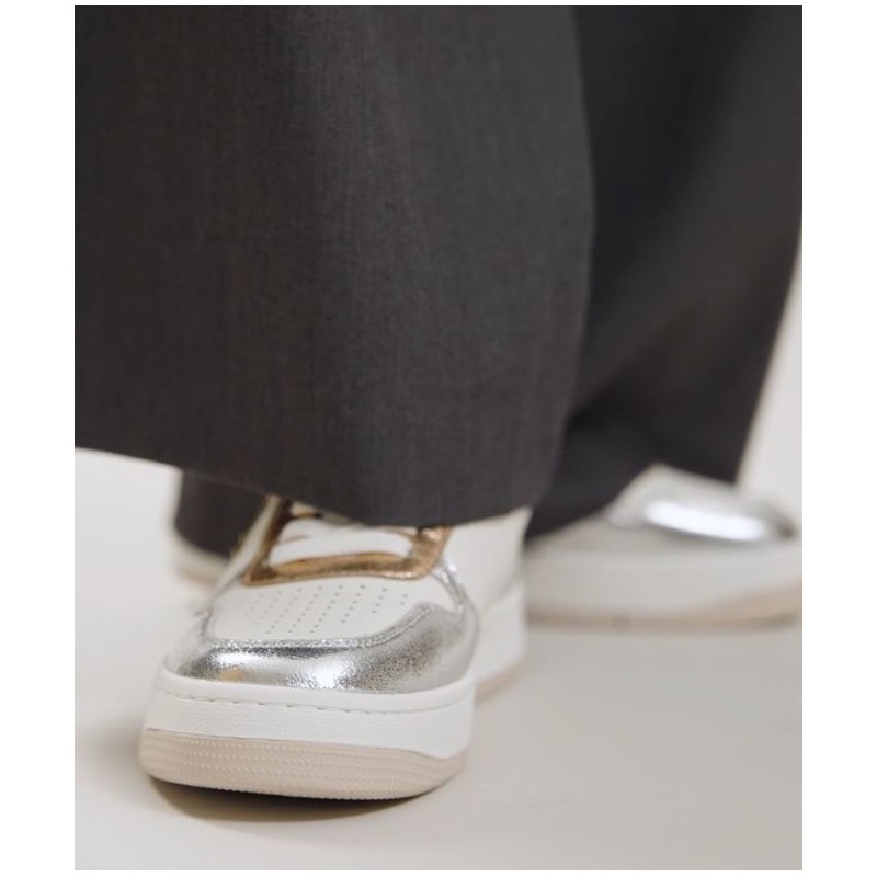 - Baskets en similicuir blanc