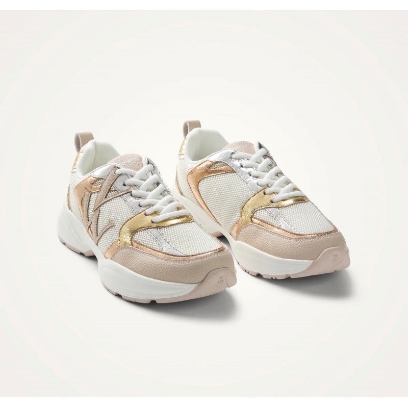 - Garants en similicuir texturé argent débordant sur l'empeigne