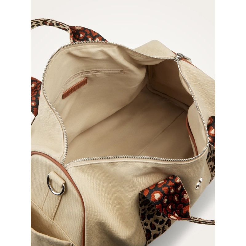 - Bandoulière amovible réglable en similicuir camel, à boucles et mousquetons argentés