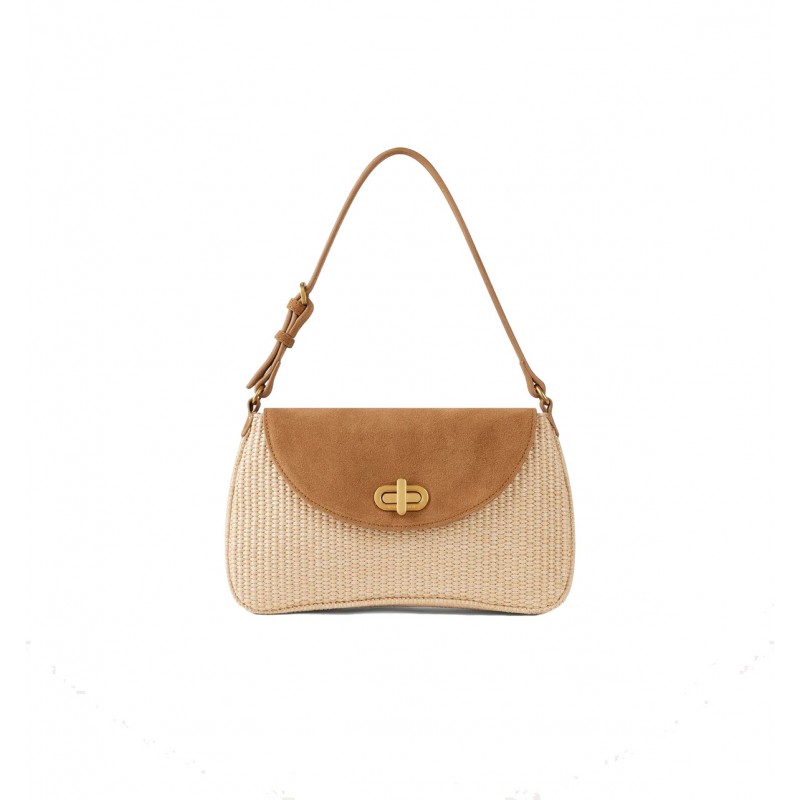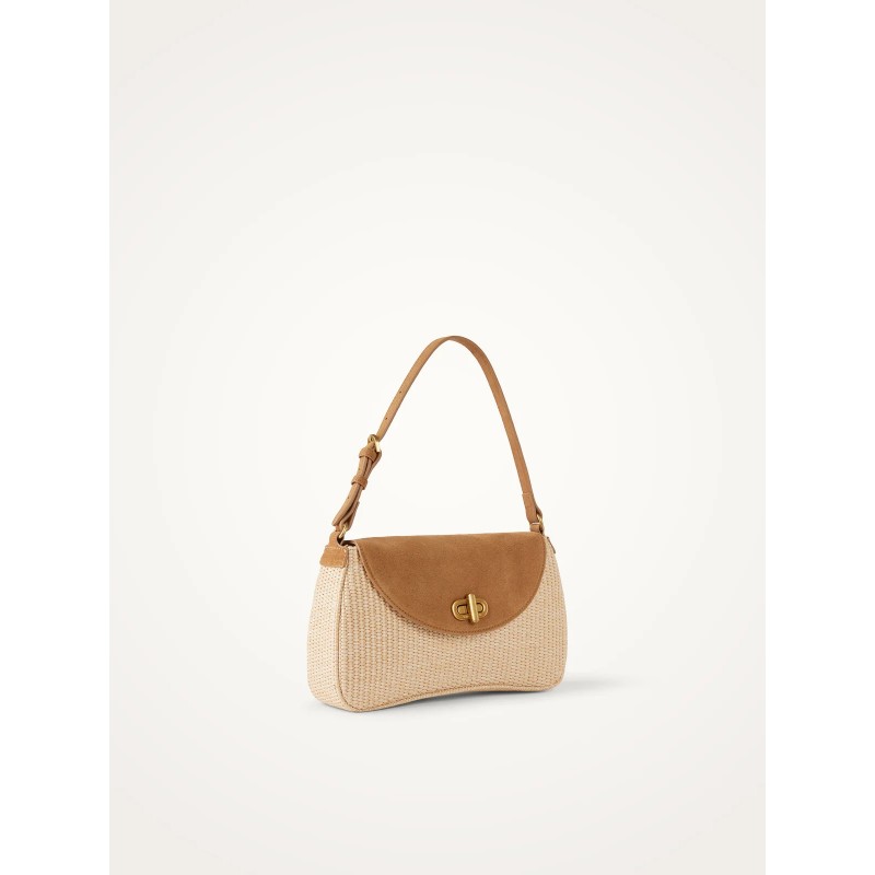 - Fermeture à rabat en croûte de cuir camel noisette avec fermoir doré
